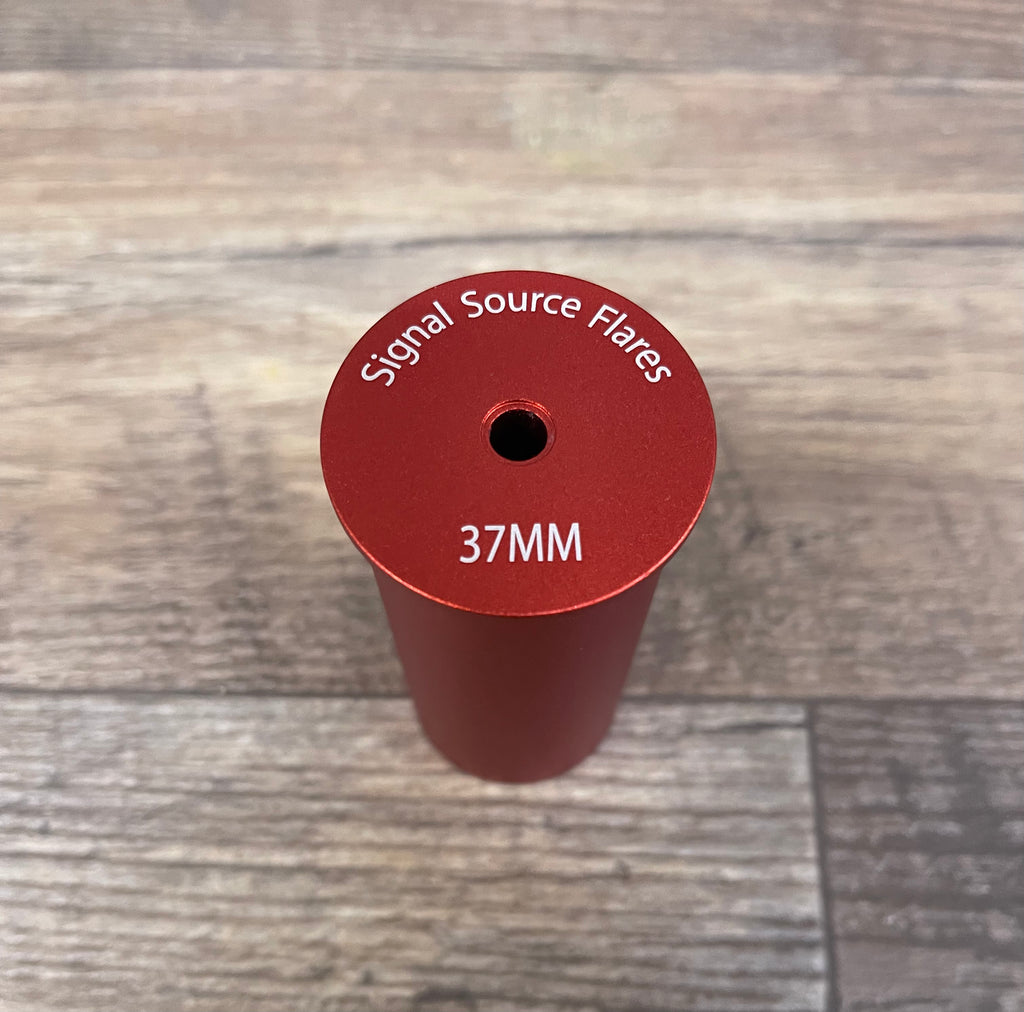 New unfired limited edition Red anodized 37mm aluminum hull. For use with black powder loads and black powder substitute. Do not use smokeless powder in the 37mm aluminum casing. Uses a #209 shotgun primer. These are 3.5" long with a milled in powder bushing. Price is per individual casing. Very Limited Quantity
